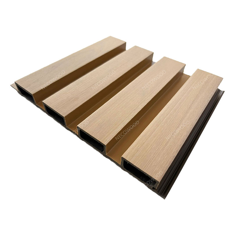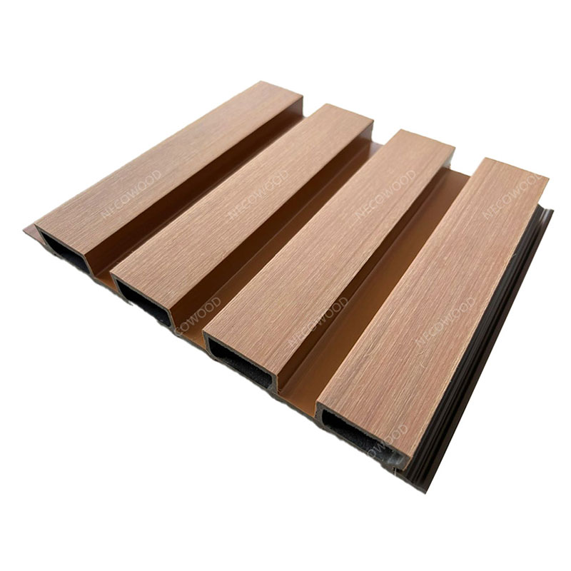 Decoración de jardín exterior Necowood WPC WPC Grovin Colling es un panel de pared al aire libre resistente a la intemperie diseñado para cercas de jardín, paredes exteriores y fachadas modernas de edificios. Hecho de compuesto de plástico de madera duradera, presenta una textura ranurada elegante con excelente resistencia a la lluvia, la luz del sol y la humedad.